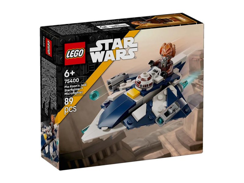 Минифигурка Пло Кун LEGO — этот фэнтезийный набор включает в себя персонажа из «Звездных войн» Пло Куна с синим световым мечом, который крепится к нижней части микроистребителя.