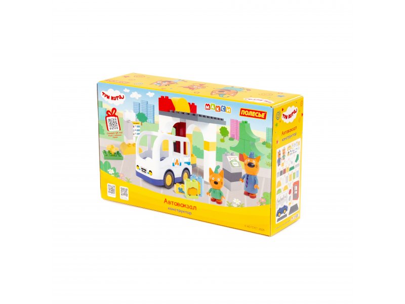 Конструктор «Макси» серии «Три кота. «Автовокзал» включает 43 ярких пластиковых элемента, выполненных из безопасных материалов, соответствующих требованиям безопасности продукции. Набор предназначен для детей от 3 лет и позволяет собрать игровую модель автовокзала с деталями, характерными для транспортной тематики. Детали конструктора имеют стандартную форму и легко соединяются между собой, что способствует развитию мелкой моторики, логического мышления, воображения и творческих навыков ребенка. Упаковка выполнена в прочной упаковке, обеспечивающей удобство хранения и транспортировки.