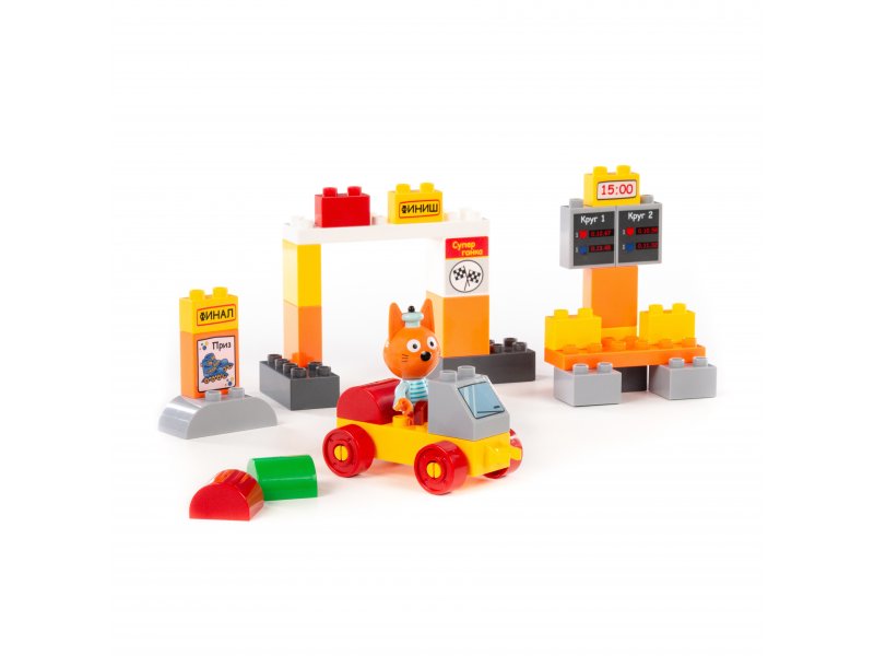 Конструктор Полесье Макси Три кота Коржик на автогонках 33 элемента
