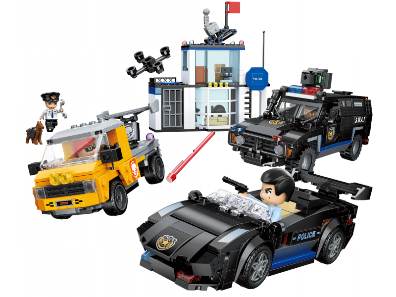 высокотехнологичной полицейской машины и фигурок. Создавайте