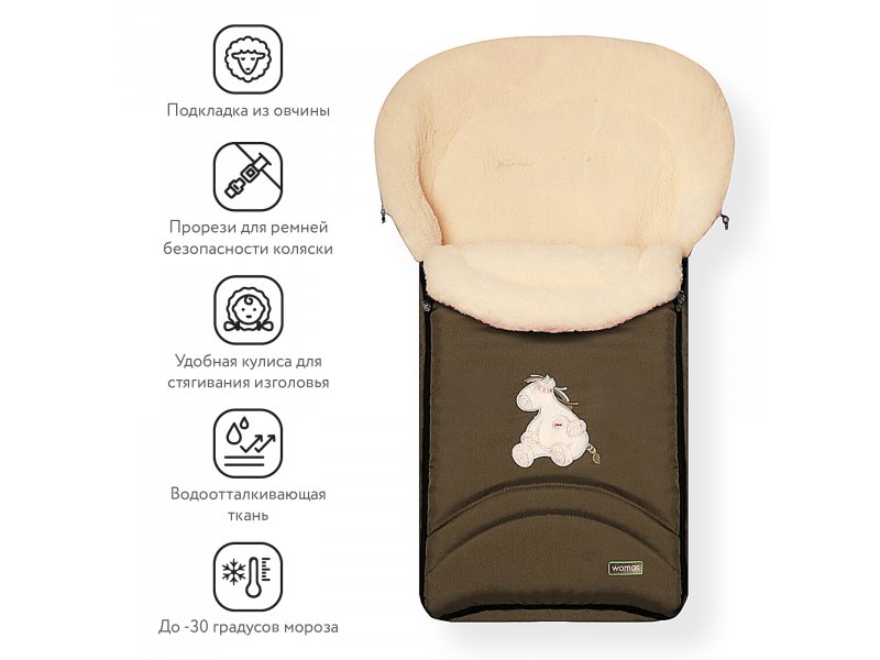 Конверт зимний в коляску Womar №07 North pole подарит вашему малышу незабываемые прогулки даже в лютый мороз. Это идеальное решение для зимних прогулок. Конвертик изготовлен из экологически чистой овечьей шерсти - природного гипоаллергенного материала, который прекрасно подойдёт для использования в любой коляске.