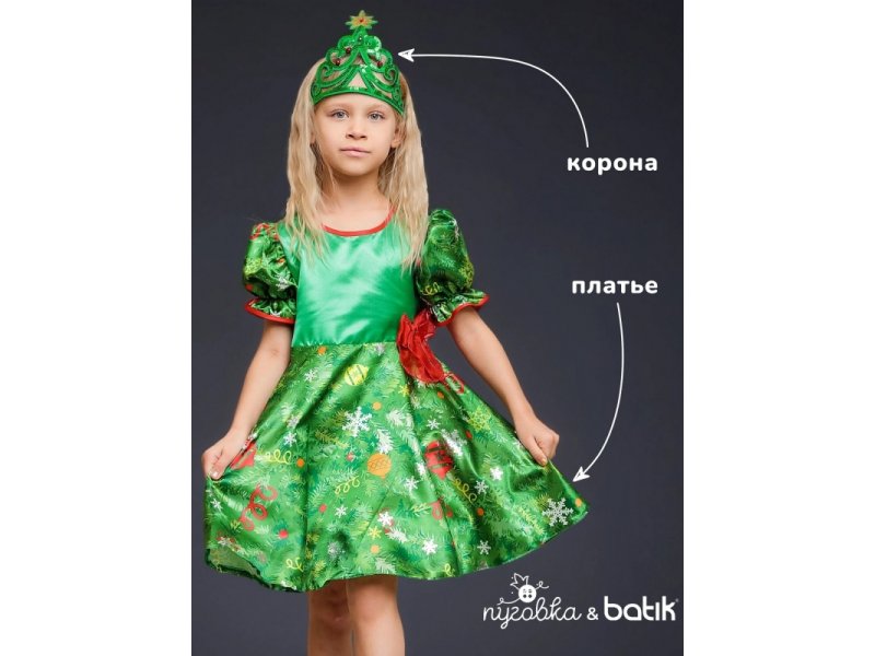 Костюм карнавальный Пуговка Ёлочка платье, корона