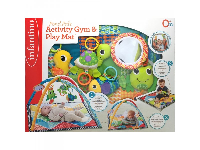 Коврик развивающий Infantino Озеро для малыша. В комплекте: функциональные игрушки, безопасное зеркальце, в котором малыши обожают изучать свое отражение, мягкая подушка для выкладывания малыша на животик. Возможность дальнейшего использования игрушек за счет универсального крепления.