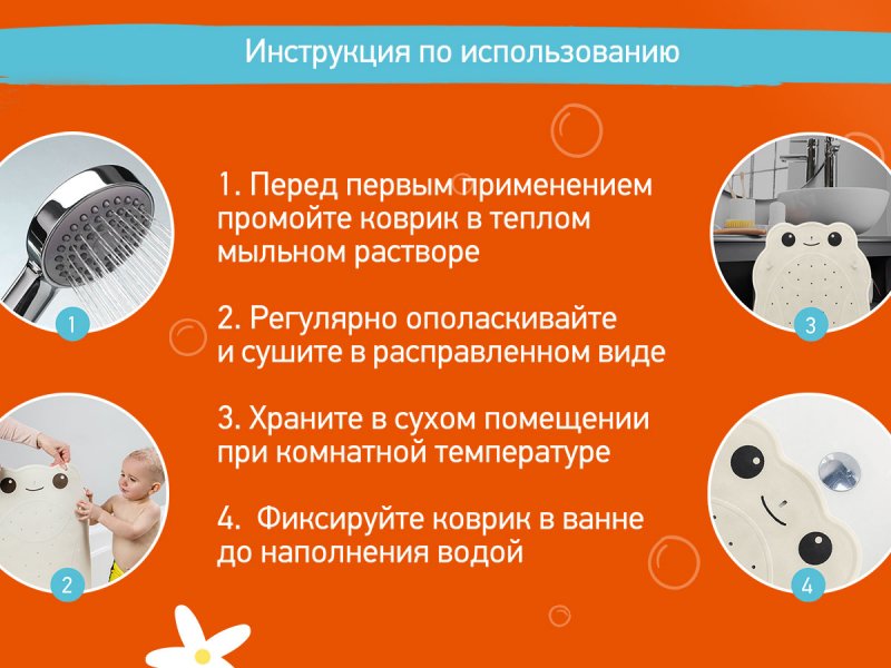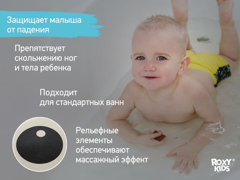 Оптимальный размер коврика делает его доступным для использования в любых ваннах и детских ванночках.