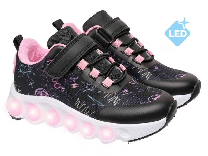 Самое волшебное – встроенные светодиоды в профиль подошвы, которые загораются при каждом шаге, добавляя яркости и магии. Подошва сочетает легкий ЭВА и износостойкий ТЭП, что дает низкий вес кроссовкам, хорошую амортизацию и устойчивость к истиранию. Благодаря этому дети могут бегать, прыгать и играть, не ощущая усталость.