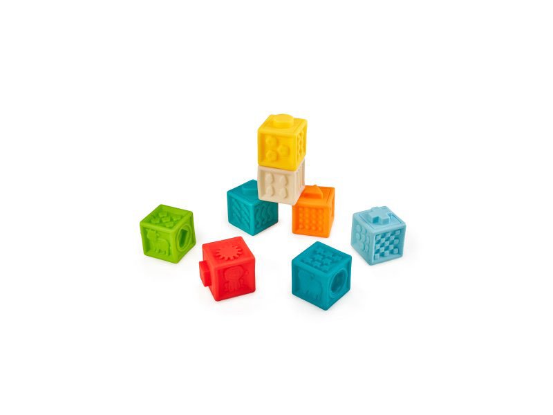 Конструктор учит различать цвета и геометрические формы, а научившись правильно подбирать грани, позволит соединять между собой кубики. Цифры на гранях кубиков помогут в изучении счёта.