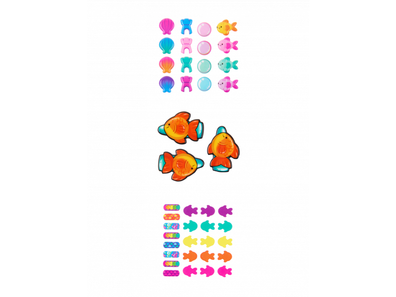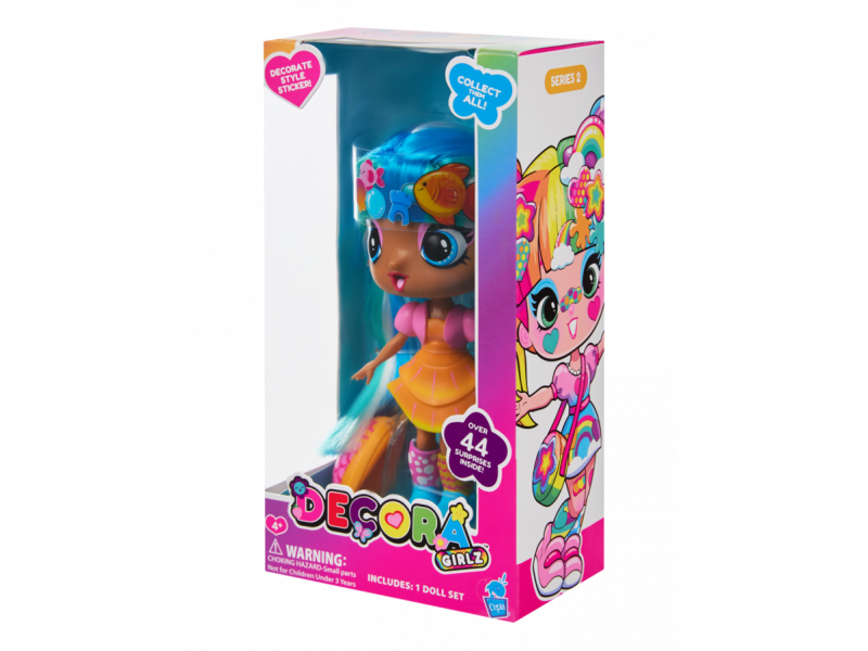 Кукла Марина Decora Girlz с разноцветными волосами в стильном наряде.Игрушка включает в себя набор плоских и объемных наклеек для кастомизации. Одежду, волосы и тело куклы можно украшать наклейками в наборе. Также в комплекте с куклой идет костюм, модная обувь, сумочка, гребень и подставка для куклы. Средняя высота куклы 13 см.