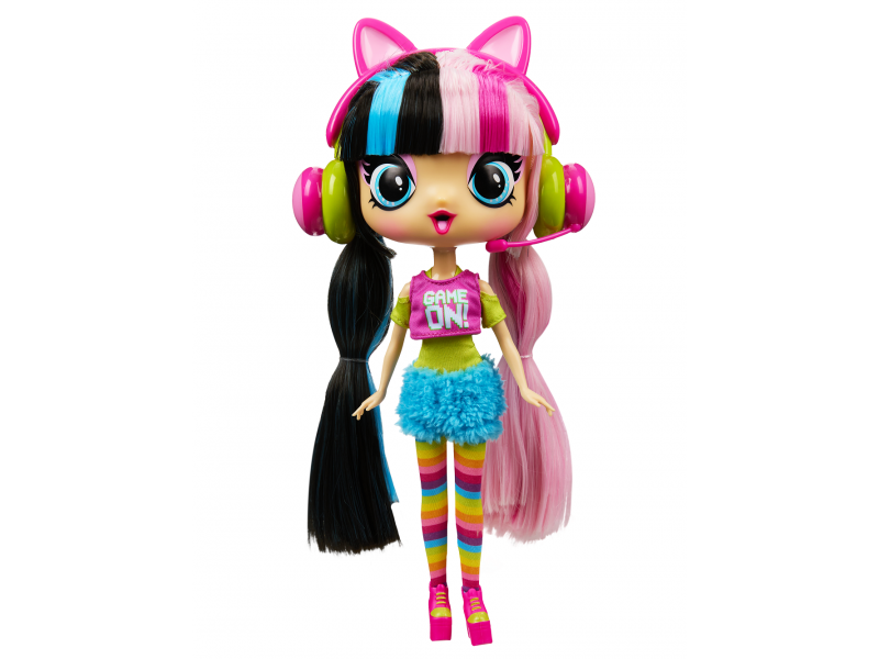 Кукла большая Пикселз Decora Girlz с разноцветными волосами в стильном наряде. Игрушка включает в себя набор плоских и объемных наклеек для кастомизации. Одежду, волосы и тело куклы можно украшать наклейками в наборе. Также в комплекте с куклой идет костюм, модная обувь, сумочка, заколки, фирменная расческа и подставка для куклы. Средняя высота кулы 28 см.