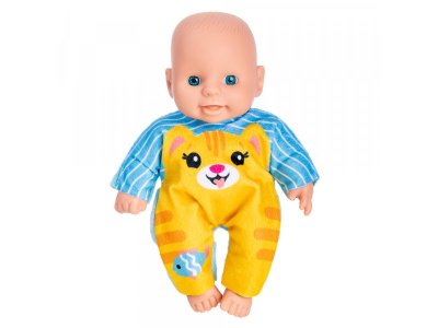 Этот милый пупс, с детально проработанным личиком, обязательно понравится вашей малышке. Куколка одета в голубой комбинезон с аппликацией в виде героя мультсериала и шапочку с ушками.
