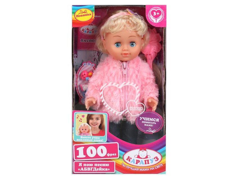 Развивающая интерактивная кукла Олеся ТМ Карапуз станет прекрасным подарком для вашей принцессы: - поёт 2 песенки: «АБВГДейка» и «Волшебный цветок» - 2 загадки - 3 стихотворения - 2 скороговорки - знает 100 фраз - вместе учим вежливые слова - учимся быть аккуратными - учимся помогать маме - 2 заколки в комплекте