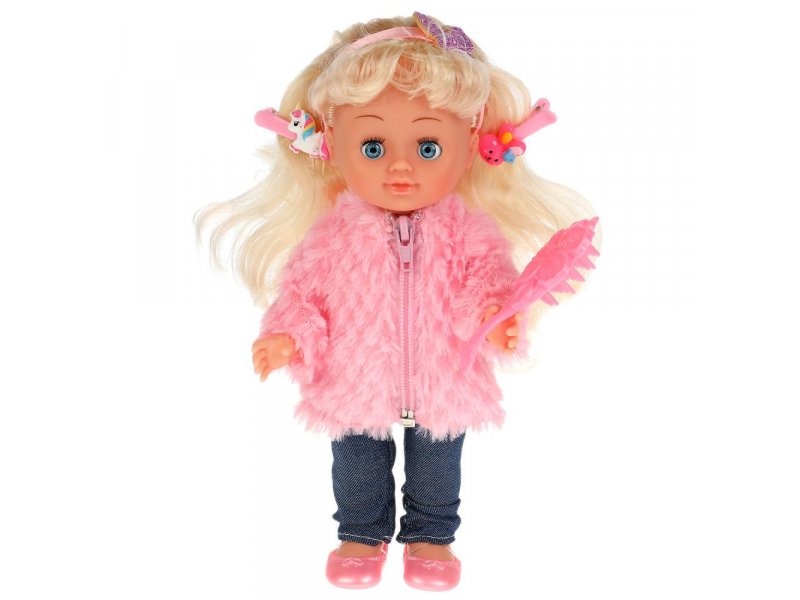 Милая кукла с детально проработанным личиком обязательно понравится малышке. Олеся одета в стильную розовую шубку и классические джинсы. Одежду легко снять и надеть.