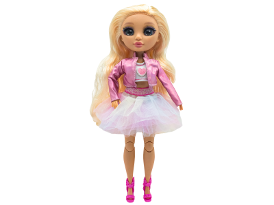 Модница София одета в нарядное розовое платье из блестящей ткани. Образ дополняют стильные серьги, колье и браслет. Одежду и аксессуары легко снять и надеть. С такой модной куклой девочке будет интересно и весело играть: благодаря тому, что руки и ноги куклы подвижны, им можно придать любое положение. У Софии светлые длинные волосы, которые хозяйка куклы сможет заплетать в разные причёски. Детально проработанный дизайн игрушки вдохновит девочку на новые игровые сюжеты.