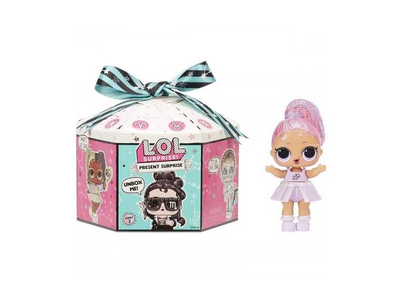 Вторая серия симпатичных куколок LOL Surprise Present Surprise включает в себя 12 зодиакальных персонажей в красивых коробочках с шестиугольным дном. Внутри 8 сюрпризов, в том числе куколка определенного знака зодиака, секретное сообщение, бумажная шапочка ко Дню рождения, бутылочка для питья, комплект одежды и обуви, стильные аксессуары.