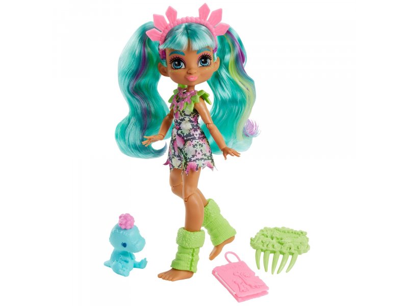 Кукла Mattel Cave Club Рокель. Откройте для себя мир Cave Club, страну приключений и даже динозавров! Одна из первых наездниц динозавров Рокель знает и любит их всех. Отправьтесь в воображаемые приключения с куклой Рокель и ее очаровательным плюшевым динозавром Тедди-Рексом. Дети от 4-х лет и старше могут разыграть приключения со своей любимой пещерной девочкой или собрать других кукол, чтобы вместе со всей командой войти в историю! Каждая кукла продается отдельно. Кукла не может стоять без опоры. Цвета и декор могут отличаться от изображений.