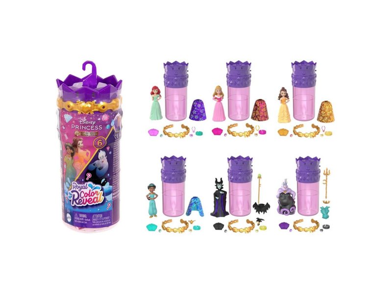 Куклы Royal Color Reveal, созданные по мотивам любимых анимационных персонажей из популярных фильмов Disney, содержат по 6 волшебных сюрпризов в каждой упаковке!