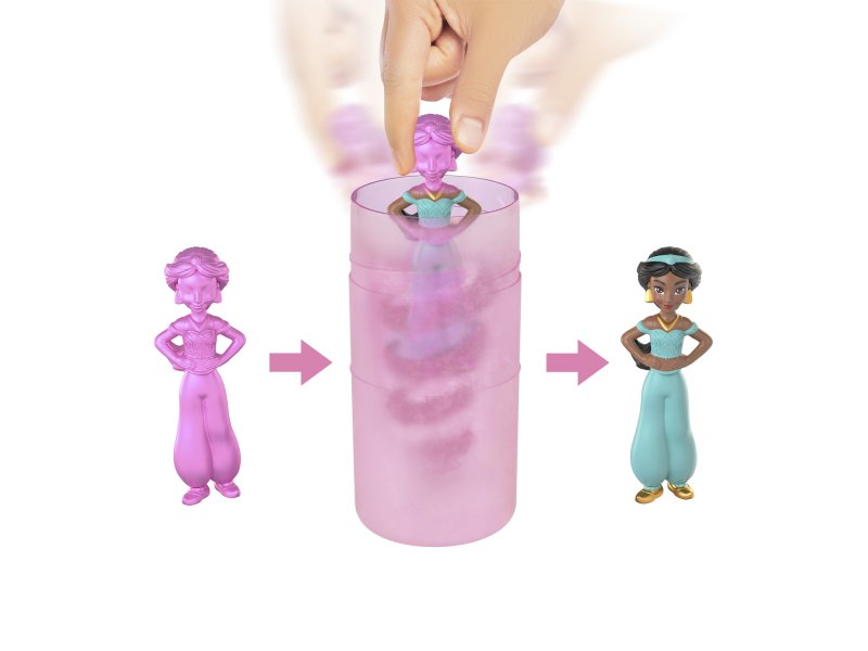 Дети начинают веселье с того, что открывают упаковку и достают маленькую куклу mystery Princess, покрытую покрытием Color Reveal, а также 3 пакетика со спрятанными сюрпризами! Затем они наполняют тюбик водой, помещают в него маленькую куклу и кружат, чтобы показать принцессу в ее фирменном образе!