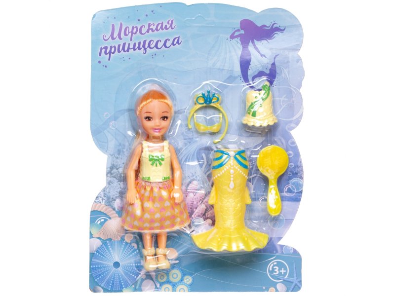 Кукла из серии «Морская принцесса» от бренда ABtoys, которая путем несложных преобразований, может трансформироваться в русалочку и будет отличным дополнением коллекции кукол ребенка. Девочке точно понравится такая новая подружка. У куклы доброе, улыбчивое лицо с большими глазами, ее длинные волосы собраны в большой хвост. Она одета в яркую, современную одежду. Дополняют набор тематические игровые предметы. Играя, девочка сможет разыгрывать сценки, придумывая интересные сюжеты. Высота куклы: 14 см. Комплектность: кукла в топе и юбке – 1 шт., хвост русалочки – 1 шт., топ – 2 шт., ободок – 1 шт., расческа – 1 шт. Материал: полимерный материал, текстиль.