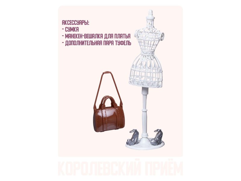 Кукла из серии "Королевский прием" от бренда ABtoys выглядит как красивая молодая девушка, которая разбирается в новинках моды и любит следить за собой. Ребенок, играя с такой куклой, придумает разные сюжеты, в которых он использует все наряды для игрушечной подружки. Также в наборе имеются модные аксессуары. У куклы подвижны части тела, благодаря чему в процессе игры девочка сможет менять положение игрушки. Комплектность: кукла, маникен-вешалка для платья, сумка, дополнительная пара туфель. Материалы: полимерные материалы, текстиль. Упаковка: коробка с окошком.