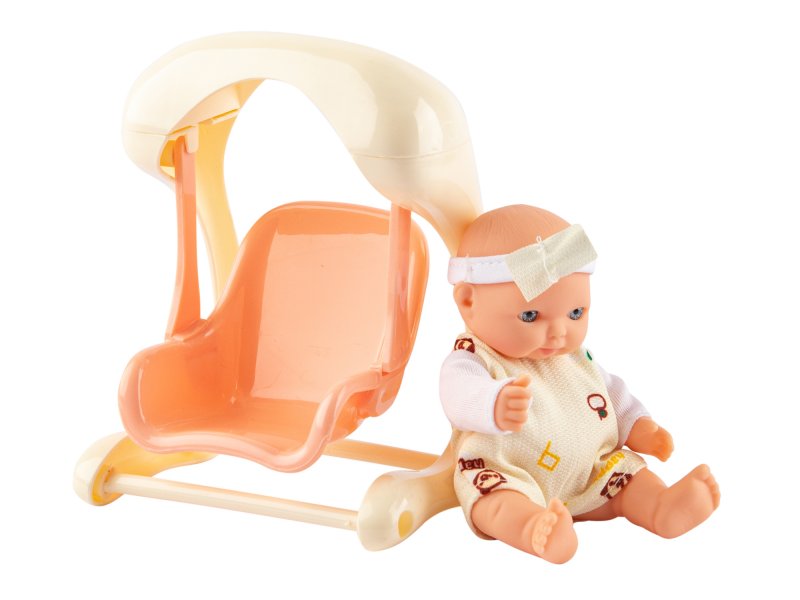 комплект входят веселые игрушечные качели, в которые кукла удобно