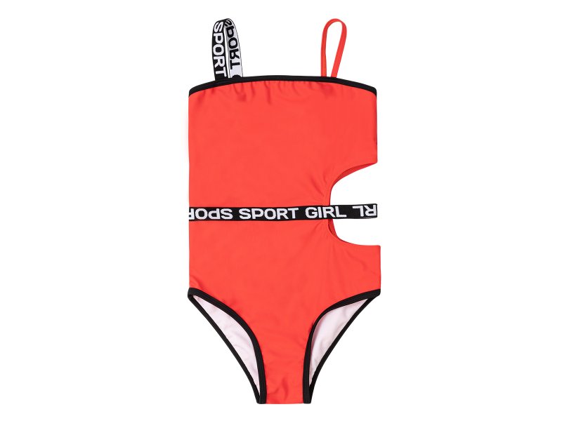 Элегантный слитный купальник красного цвета для девочки — идеальный выбор для пляжного отдыха и плавания.