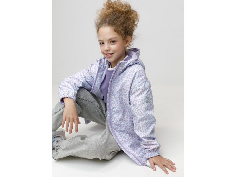 Ветровка для девочки из мембранной ткани с дополнительной тефлоновой обработкой. Верхняя мембранная ткань 1000/1000 с тефлоновым покрытием отталкивает воду и грязь и обладает «дышащими» свойствами. Подкладка выполнена из флиса. У изделия предусмотрена защита подбородка. Несъёмный капюшон регулируется с помощью эластичного шнура со стопперами. Низ рукавов имеет эластичную резинку для лучшего прилегания. Во всех изделиях верхнего ассортимента для безопасности ребёнка предусмотрены светоотражающие элементы.