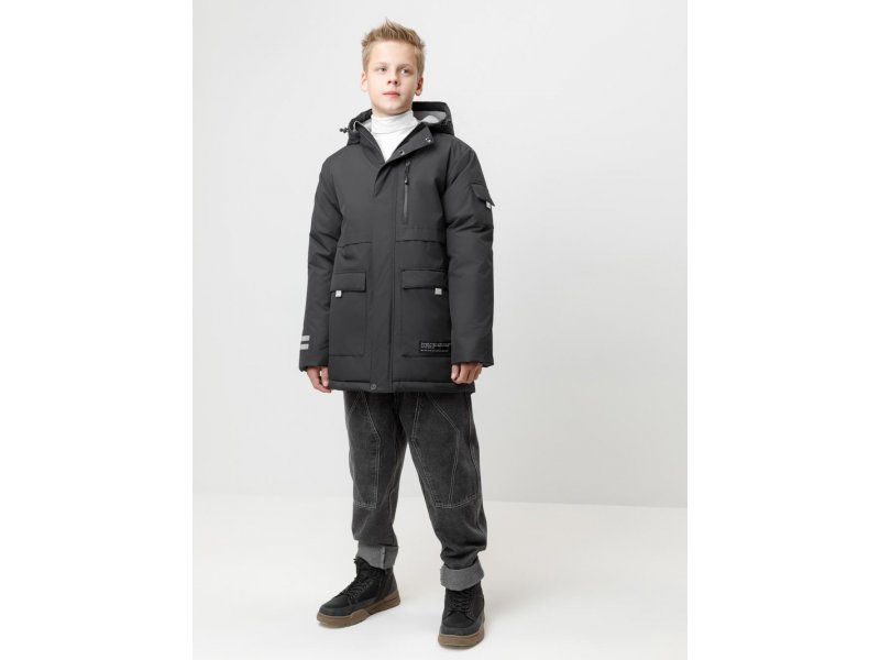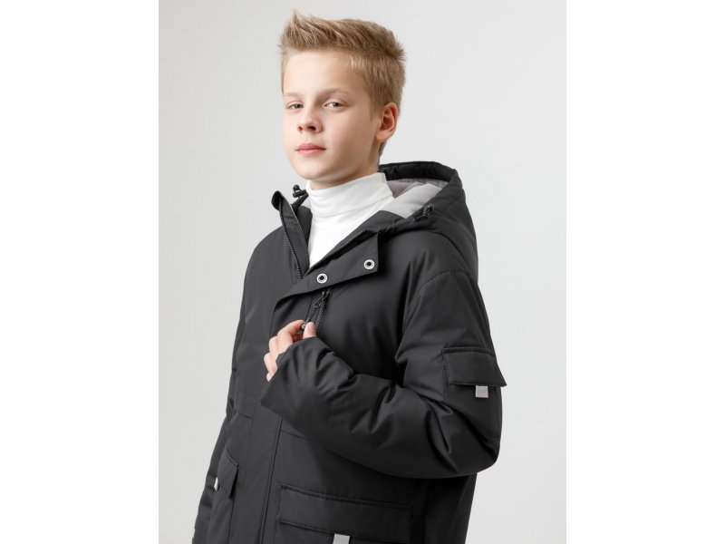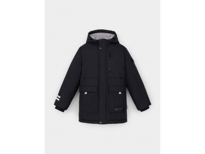 Зимняя куртка для мальчика с утеплителем SEE®: 250 г/м2. Выполнена из мембранной ткани с дополнительной тефлоновой обработкой, которая предохраняет изделие от загрязнений и отталкивает влагу. Подклад выполнен из 100% полиэстера Tricot. Куртка застёгивается на молнию и на дополнительную планку с кнопками. У изделия предусмотрена защита подбородка. Несъёмный капюшон имеет эластичную утяжку со стопперами, глубина капюшона регулируется при помощи липучки. На рукавах внутренние эластичные манжеты. Два накладных кармана с клапанами по бокам и один карман на груди. Во всех изделиях верхнего ассортимента для безопасности ребёнка предусмотрены светоотражающие элементы. Состав: верх: 80% полиэстер, 20% полиуретан; подклад: 100% полиэстер; Утеплитель: 100% полиэстер Температурный режим от -5º С до -25º С