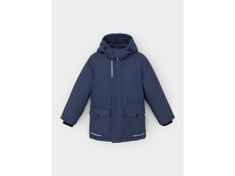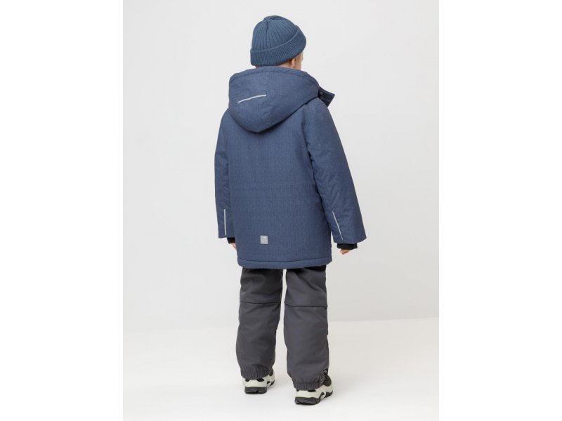Зимняя куртка для мальчика с утеплителем SEE®: 300 г/м2. Выполнена из мембранной ткани с дополнительной тефлоновой обработкой, которая предохраняет изделие от загрязнений и отталкивает влагу. Подклад выполнен из 100% полиэстера Tricot. Куртка застёгивается на молнию и внешнюю планку с магнитными кнопками, предусмотрена защита подбородка. Съёмный капюшон на кнопках и липучках имеет эластичную утяжку со стопперами. На рукавах внутренние эластичные манжеты. Два накладных кармана с клапанами по бокам. По талии эластичная утяжка со стопперами. Во всех изделиях верхнего ассортимента для безопасности ребёнка предусмотрены светоотражающие элементы. Состав: верх: 80% полиэстер, 20% полиуретан; подклад: 100% полиэстер; Утеплитель: 100% полиэстер. Температурный ркежим: от -5º С до -30º С