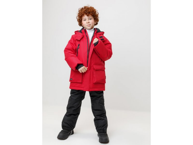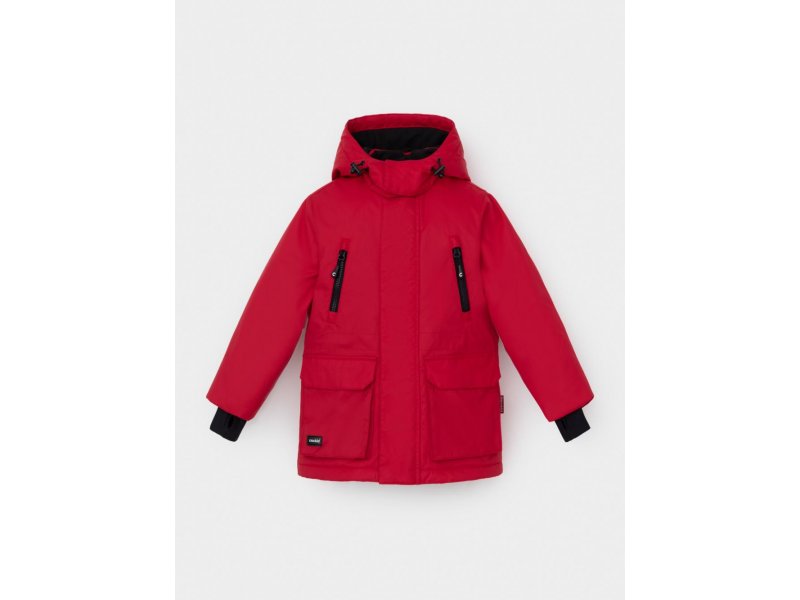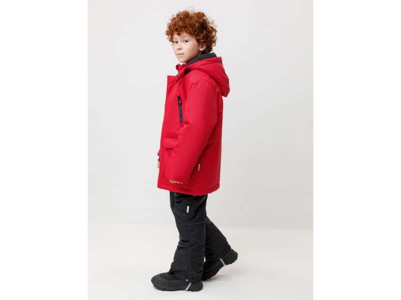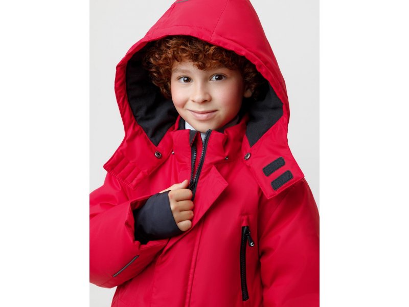Зимняя куртка для мальчика с утеплителем SEE®: 250 г/м2. Выполнена из мембранной ткани с дополнительной тефлоновой обработкой, которая предохраняет изделие от загрязнений и отталкивает влагу. Подклад выполнен из 100% полиэстера Tricot. Куртка застёгивается на молнию и внешнюю планку с магнитными кнопками, предусмотрена защита подбородка. Съёмный капюшон на кнопках и липучках имеет эластичную утяжку со стопперами. На рукавах внутренние эластичные манжеты. Два накладных кармана с клапанами по бокам и два кармана с молниями на груди. По талии эластичная утяжка со стопперами. Во всех изделиях верхнего ассортимента для безопасности ребёнка предусмотрены светоотражающие элементы. Состав: верх: 80% нейлон, 20% полиуретан; подклад: 100% полиэстер; Утеплитель: 100% полиэстер. Температурный ркежим: от -5º С до -25º С