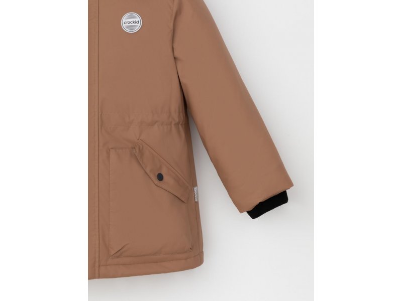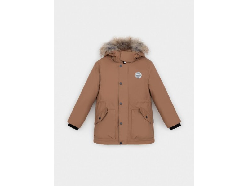 Зимняя парка для мальчика с утеплителем SEE®: 250 г/м2. Выполнена из мембранной ткани с дополнительной тефлоновой обработкой, которая предохраняет изделие от загрязнений и отталкивает влагу. Подклад выполнен из 100% полиэстера Tricot. Парка застёгивается на молнию и внешнюю планку с металлическими кнопками, предусмотрена защита подбородка. Съёмный капюшон на кнопках и липучках имеет эластичную утяжку со стопперами и отстёгивающуюся опушку из искусственного меха. На рукавах внутренние эластичные манжеты. Два накладных кармана с клапанами по бокам. По талии эластичная утяжка со стопперами. Во всех изделиях верхнего ассортимента для безопасности ребёнка предусмотрены светоотражающие элементы. Состав: верх: 80% нейлон, 20% полиуретан; подклад: 100% полиэстер; Утеплитель: 100% полиэстер. Температурный ркежим: от -5º С до -25º С