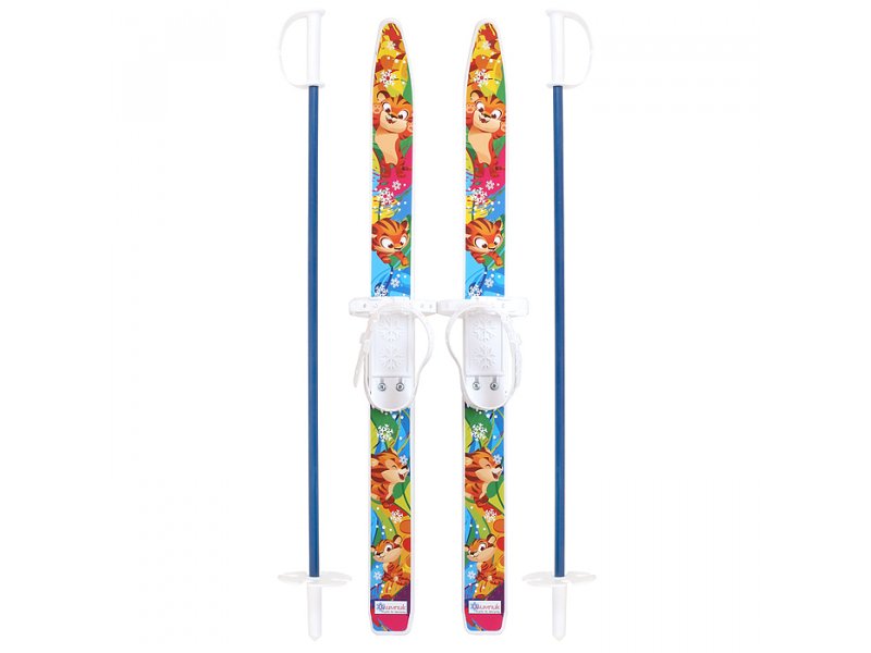 Детские лыжи «Лыжики-пыжики Тигрёнок» 75 см с палками и универсальными креплениями — идеальный комплект для самых маленьких лыжников.