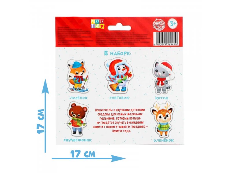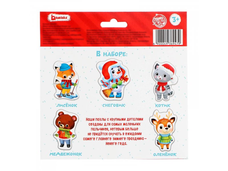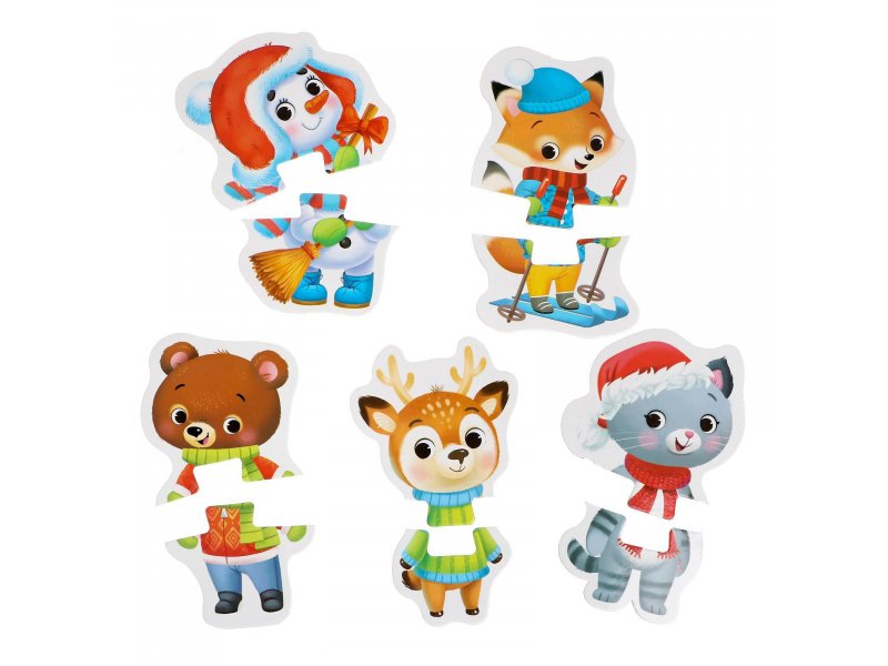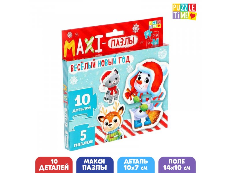 Макси-пазлы «Весёлый Новый год!» — это 10 деталей, из которых ребёнок соберёт 5 разных героев. Малыш познакомится с забавными животными и сказочным персонажем.