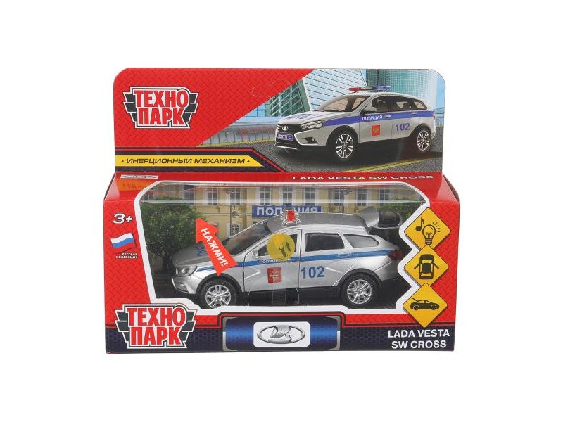 Машина металл свет-звук LADA VESTA SW CROSS ПОЛИЦИЯ 12 см, двер, багаж, кор. Технопарк в кор.2*36шт