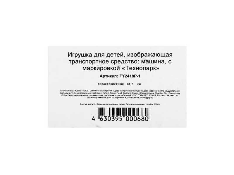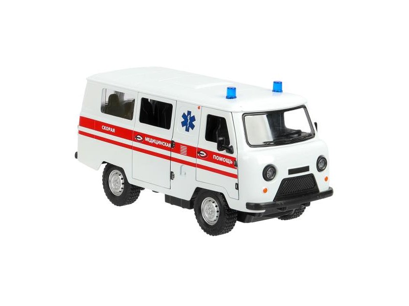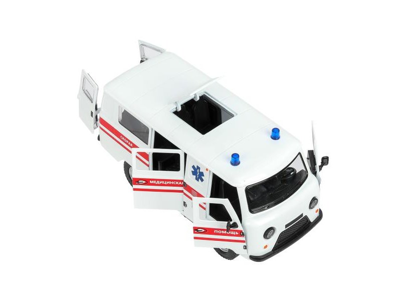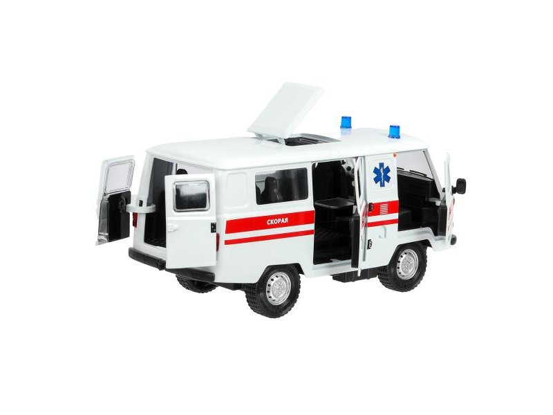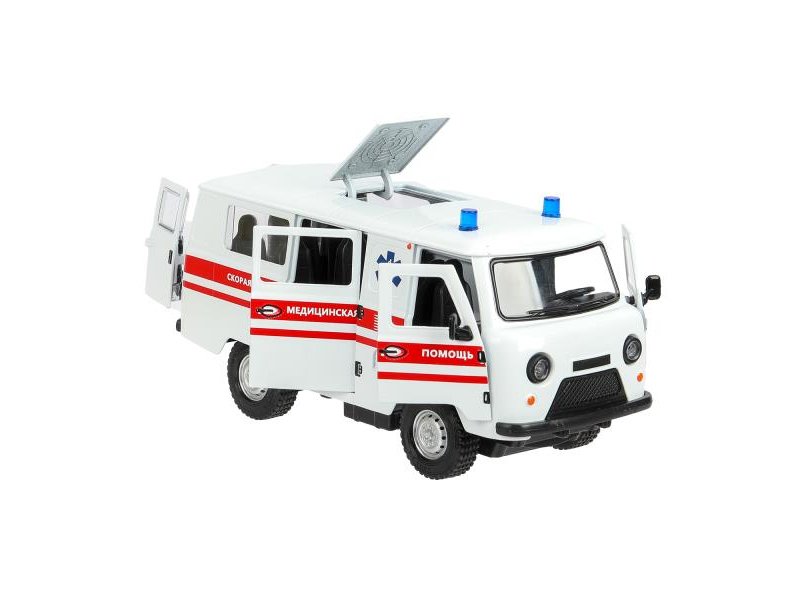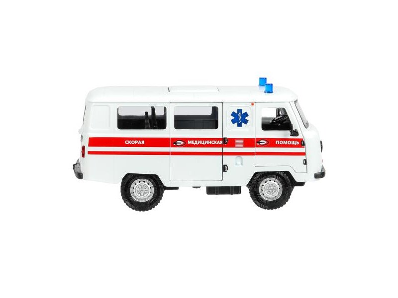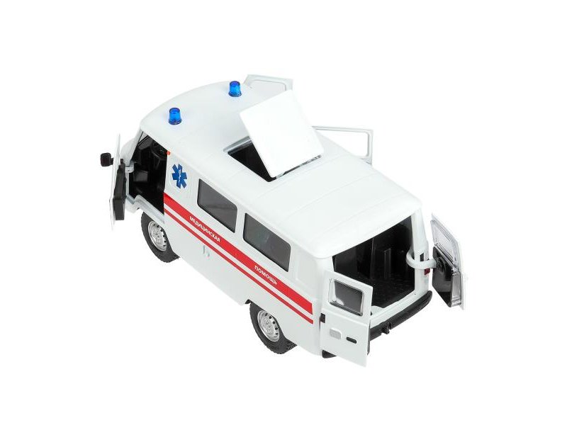 Машина металл свет-звук UAZ УАЗ 452 СКОРАЯ, 18,5 см, св-зв,дв,люк,баг,ин,бел Технопарк в кор.2*18шт