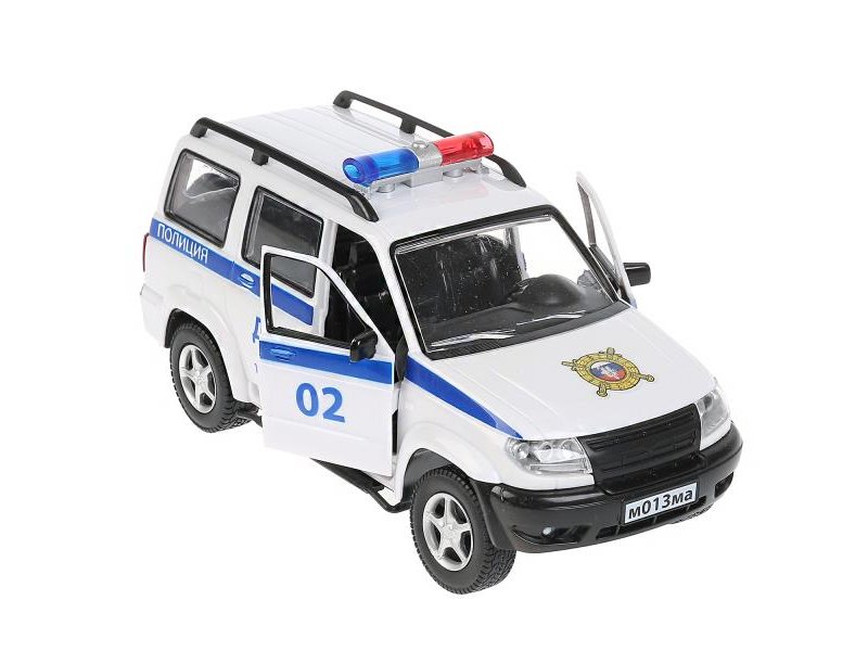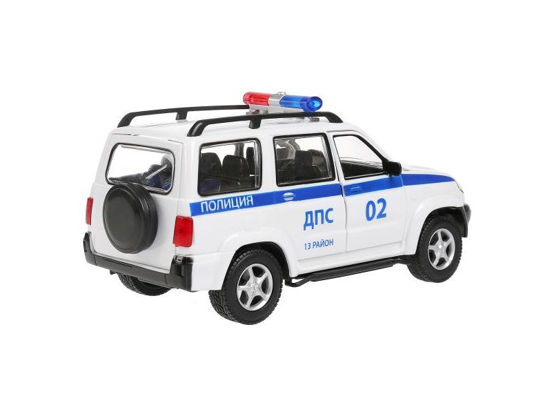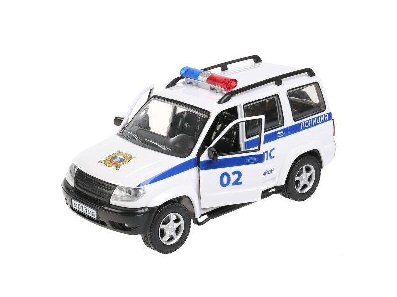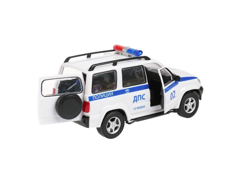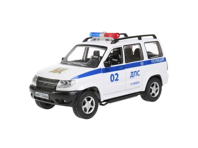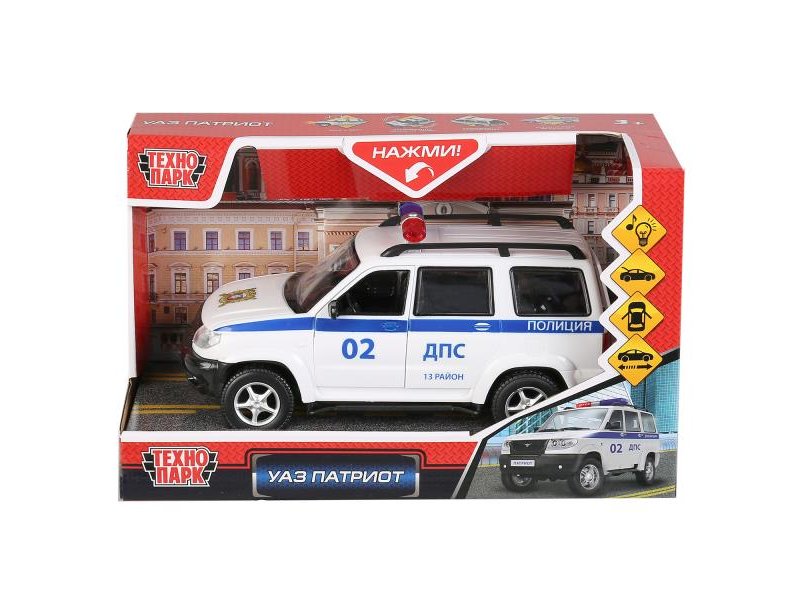 Машина пластик свет-звук УАЗ ПАТРИОТ 21см, отк.дв., багаж., инерц., кор. Технопарк в кор.36шт