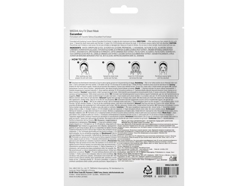 Маска для лица Missha увлажняющая с экстрактом огурца для сухой кожи 19 г