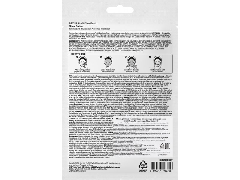 Маска для лица Missha увлажняющая с маслом ши для сухой кожи 19 г