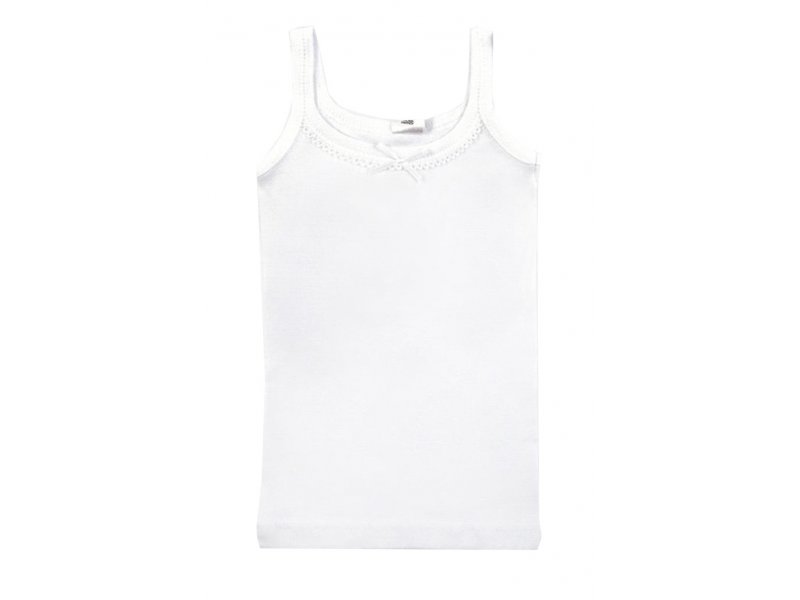 Майка Crockid на бретелях из однотонного ластика бесшовная, проймы и горловина обработаны бейкой, мережка по горловине, атласный бантик на полочке.