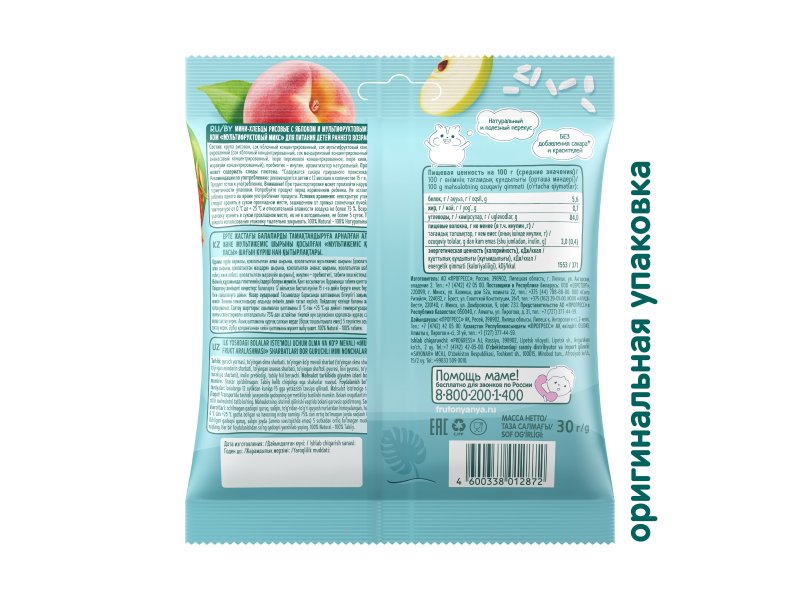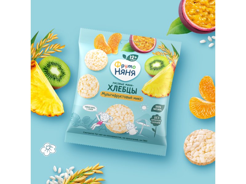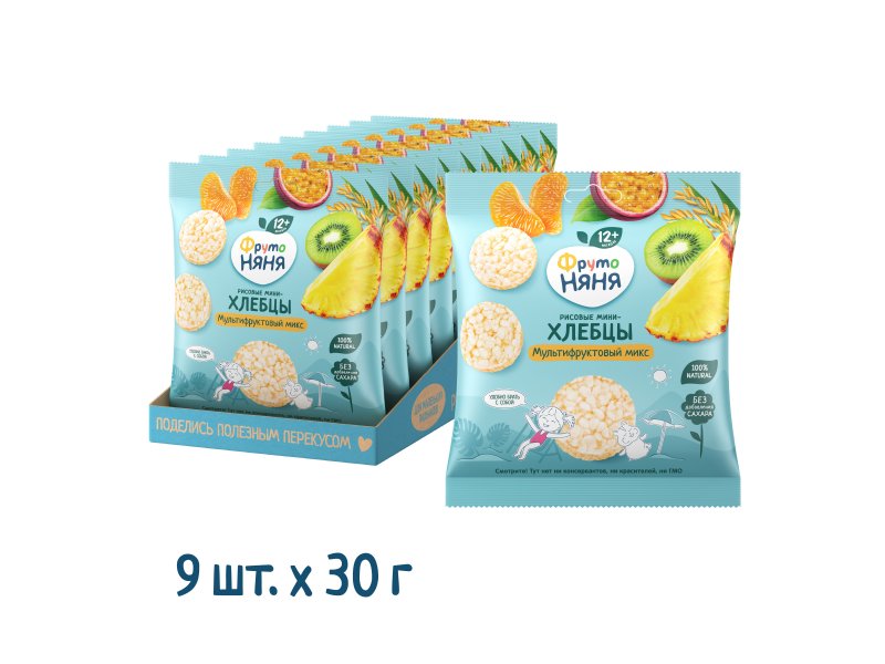Мини-хлебцы ФрутоНяня рисовые Мультифруктовый микс с яблоком и мультифруктовым соком 30 г