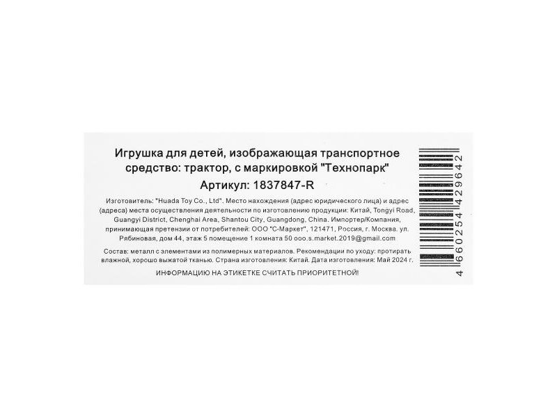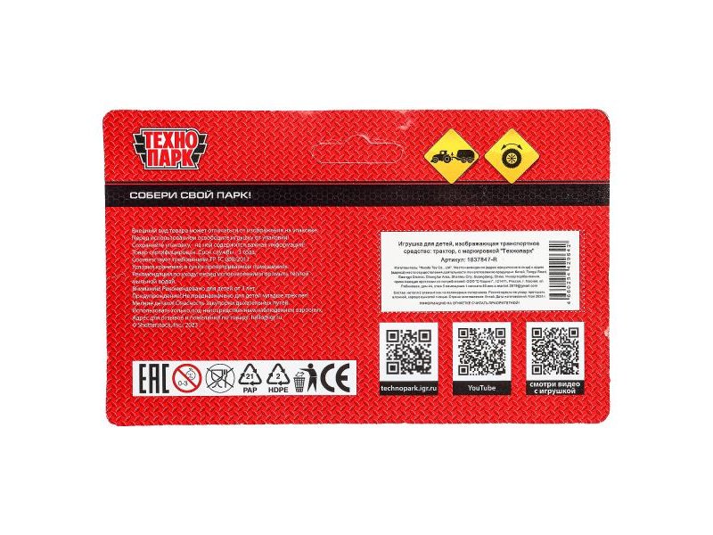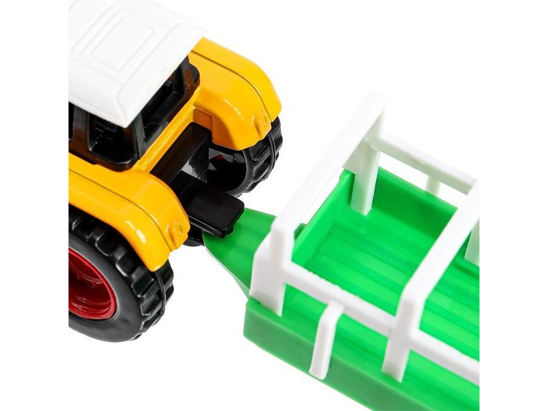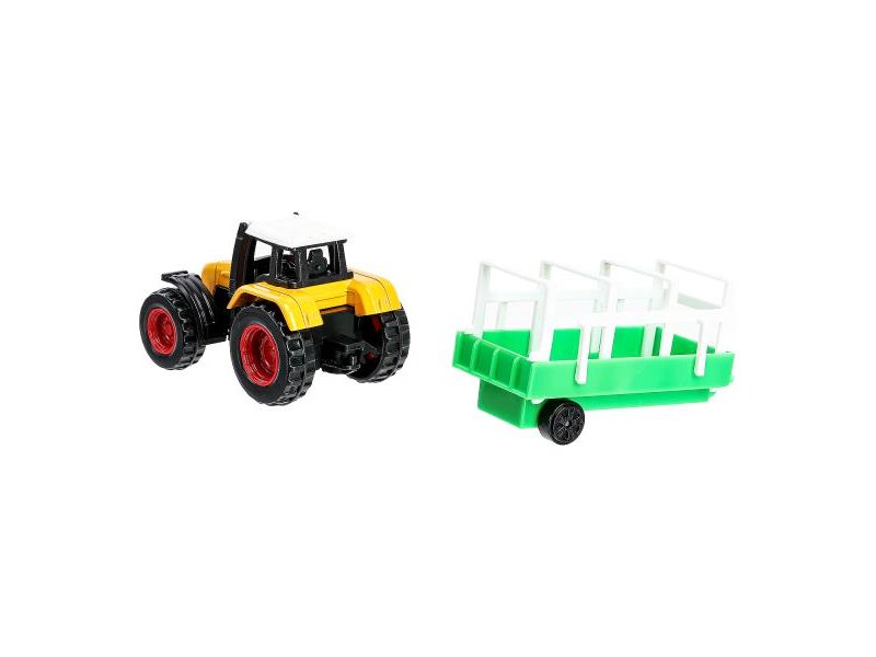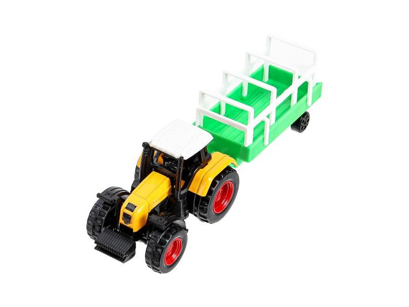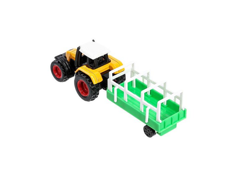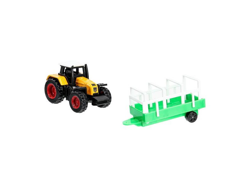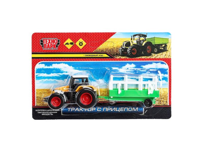 Модель металл ТРАКТОР С ПРИЦЕПОМ 15см, подвижные детали, ассорт. 4 модели Технопарк в кор.2*180шт