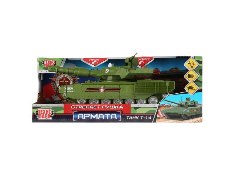 Пластиковая модель «Армата Танк Т-14» ТМ «Технопарк» станет прекрасным подарком для ребёнка: - световые эффекты - звуковое сопровождение - подвижная пушка - 4 кнопки - инерционный механизм (поставьте танк на ровную поверхность, потяните назад и отпустите – он тут же поедет вперёд) Эта модель, выполненная с учётом всех особенностей прототипа, обязательно понравится вашему ребёнку. Каждая деталь отлично проработана. Реалистичный дизайн данной модели плюс световые и звуковые эффекты позволят с головой погрузиться в игру, придумывая новые интересные сюжеты. Кроме того, эта игрушка познакомит малыша с видами военной техники. Игра с инерционной моделью ТМ «Технопарк» развивает: - координацию движений - внимание - ловкость - моторику Длина модели: 21 см. Материал: пластмасса. Работает от 3-х батареек типа LR44 (в комплекте). Рекомендовано детям от 3-х лет.