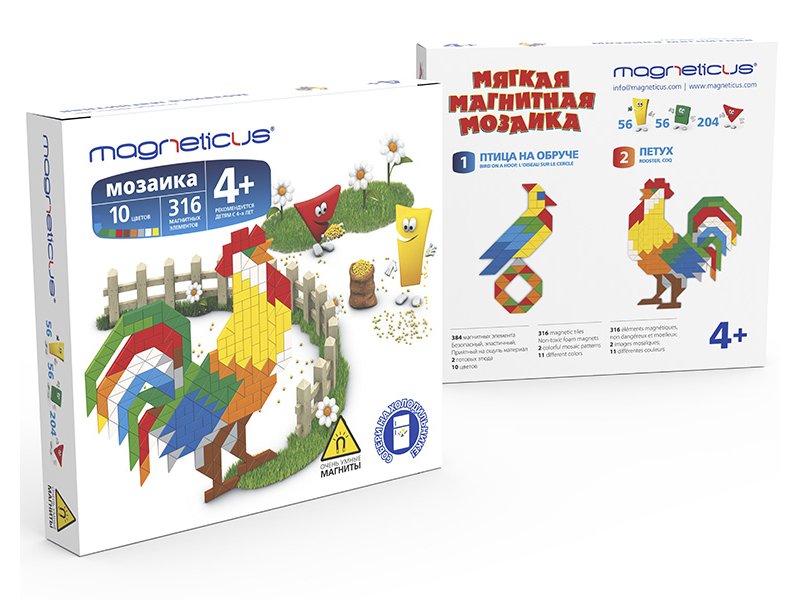 Мозаика-миди Magneticus Петух 316 элементов 10 цветов. Мягкая магнитная мозаика Magneticus - это набор, состоящий из геометрических фигур разных цветов и форм и листовки с вариантами сборки картин. Миди-мозаику можно собирать на любой металлической поверхности, поэтому ее удобно брать с собой в гости или короткие поездки. Она отлично сочетается с другими наборами Magneticus, имеющими металлическое игровое поле. Мозаика способствует развитию воображения, мелкой моторики, внимательности, а также воспитывает в ребенке усидчивость.