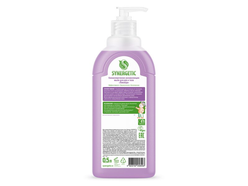 Мыло жидкое Synergetic для рук и тела биоразлагаемое Лаванда, 0,5 л