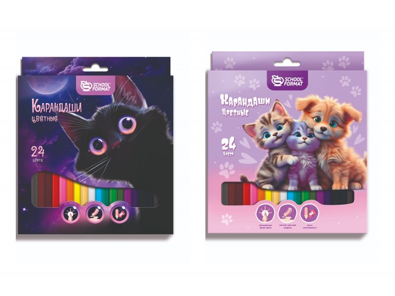 Набор цветных карандашей Schoolformat Микс для девочек 24 цвета