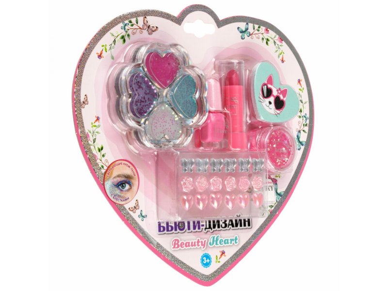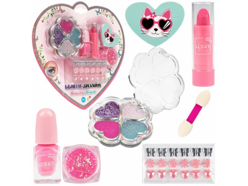 Набор детской косметики Lukky Бьюти Дизайн Beauty Heart 4-х цветн. тени, аппликат., лак для ногтей p