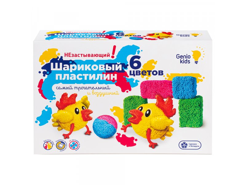 Новый шариковый пластилин Genio kids с незастывающей формулой 6 цветов – его нравится трогать и с ним хочется долго играть. Игра с мелкими элементами способствует формированию новых нейронных связей и подготовке рук к письму, развивает координацию движений.