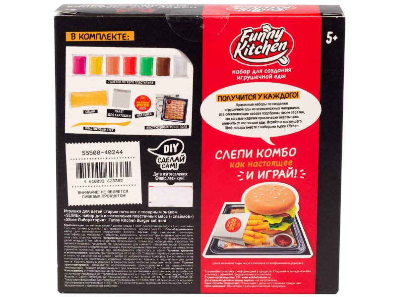 Набор для лепки Slime Лаборатория Funny Kitchen Burger set mini
