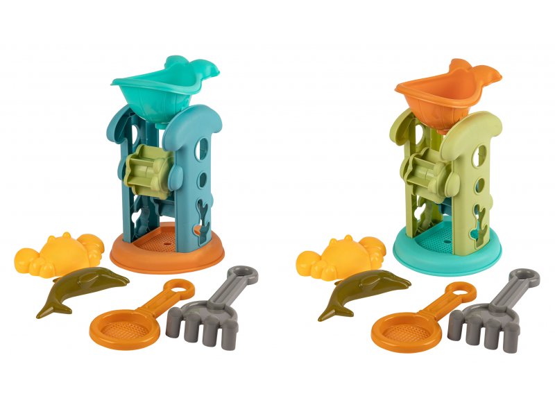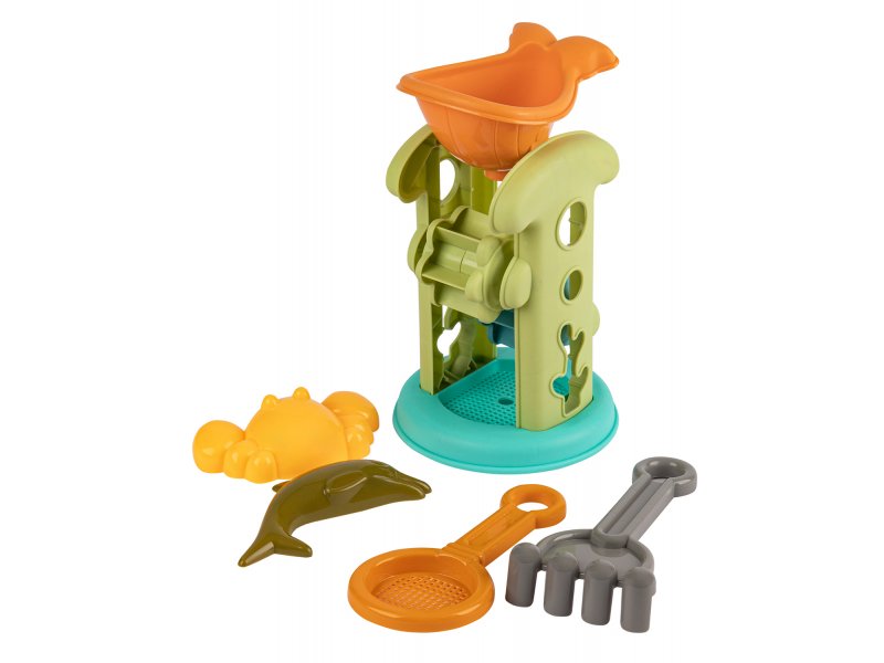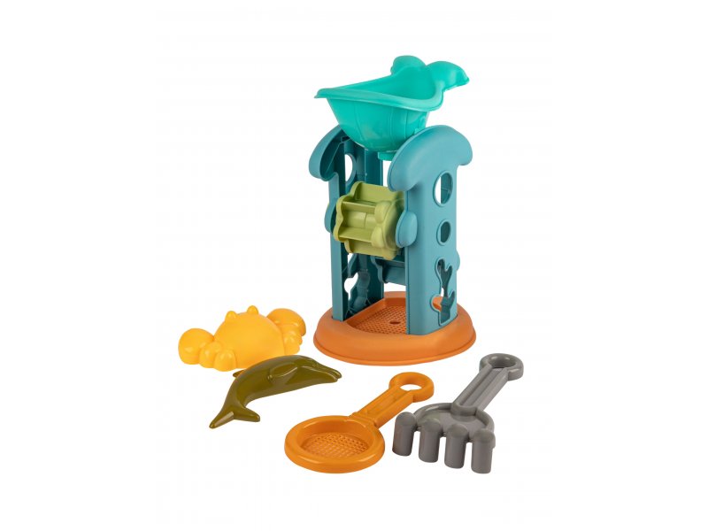 «Мельница»! Этот набор включает яркую мельницу, две формочки, сито и