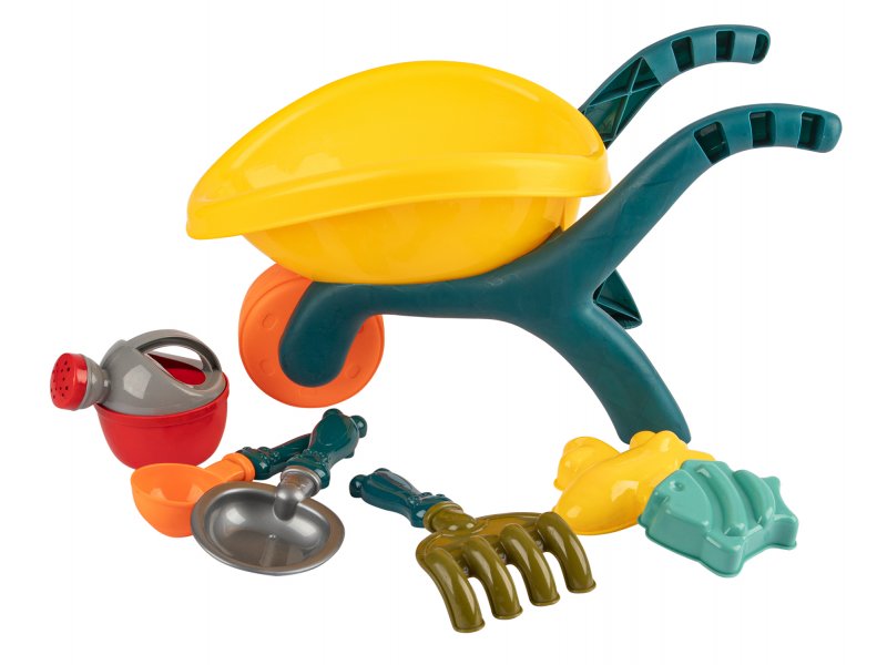 Набор для песка с машинкой Ocie и тачкой — отличный выбор для активного отдыха на свежем воздухе! В комплект входят тачка, две лопатки, лейка, грабли и четыре формочки, что позволяет вашему ребенку создавать удивительные песчаные шедевры. Все элементы выполнены из безопасных и прочных материалов, идеально подходящих для игр в песочнице или на пляже. Этот набор развивает творческие способности и мелкую моторику, даря вашему малышу множество часов увлекательного времяпрепровождения на природе!