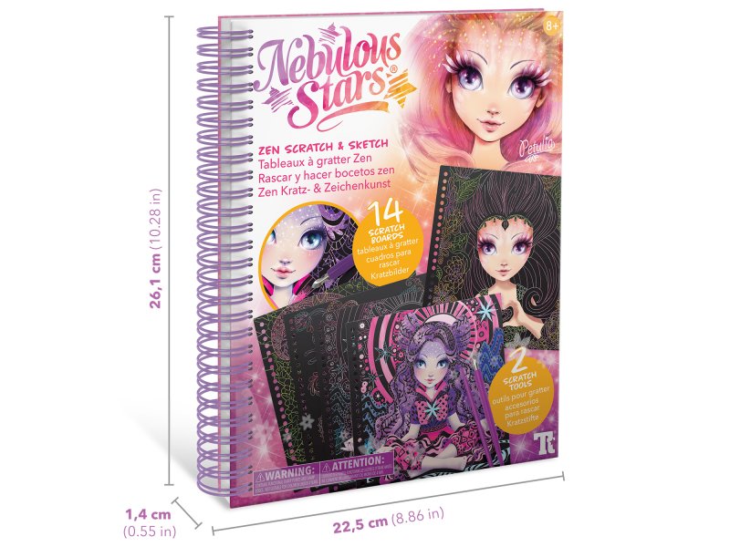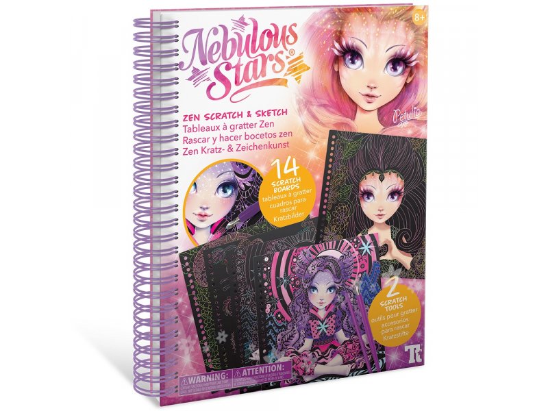 Комплектация: 14 основ для граттажа, 2 инструмента-скребка, полная история звездочки Petulia, инструкция