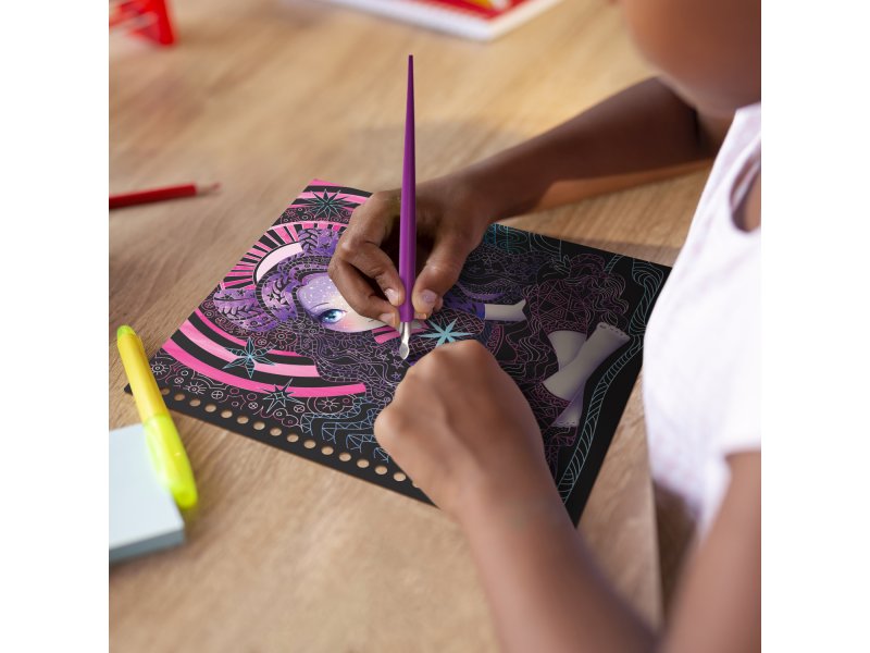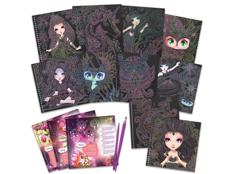 Набор для рисования в технике граттаж. Создание 14 рисунков путём снятия защитного слоя с основы для граттажа с помощью специального инструмента-скребка.